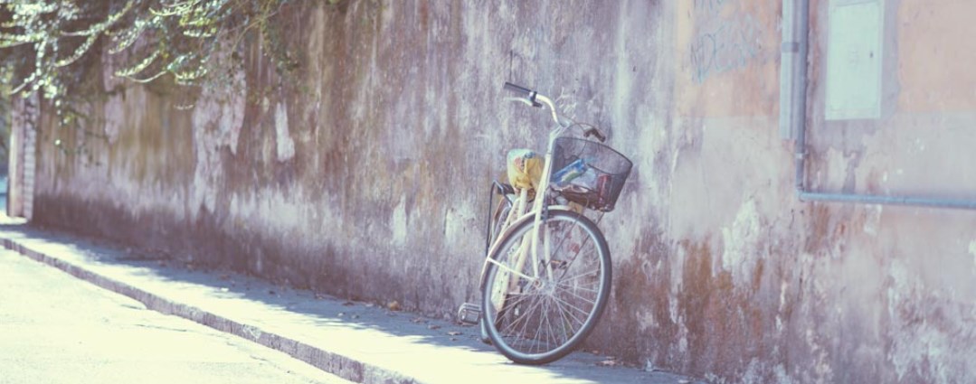 Featured image (helemaal hierboven): Retro City Bike Leaning Against Old City Wall, door Ed Gregory van stokpic.com
