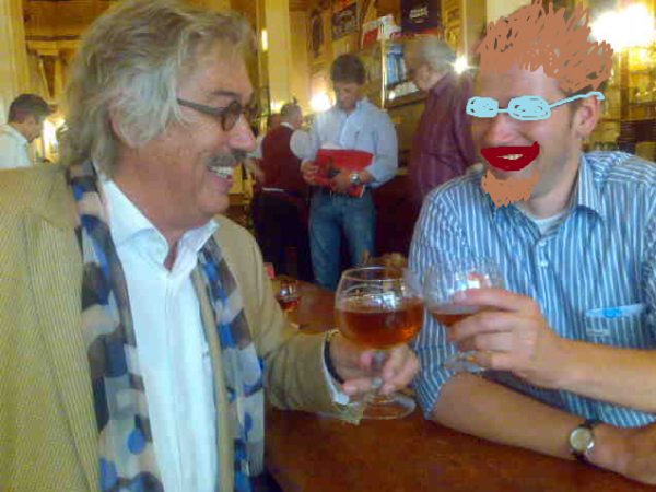Ook De Schrijvende Rechter (DSR) kondigde aan dat hij zeker eens langs zou gaan. Dus hopen we dat dit wel even op tijd wordt doorgegeven. Onze rechter drinkt zoals we weten vooral bier. En dat met liters tegelijk. Grappig dat hij aan de uitbater van een wijnlokaal daar dan om gaat vragen. Enfin, Mario is de beroerdste niet en bewaart alleen de goede herinneringen. Het onderstaande plaatje ziet er zeker gezellig uit. Mario houdt wel van een biertje, dat kun je wel zien.