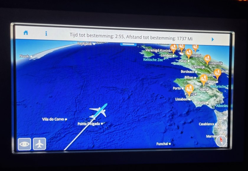 Die foto van de vliegtuigmaaltijd verklaart trouwens een hoop. Als hoofdgerecht een brokje cornedbeef waarvan de randjes al een beetje bruin zijn geworden, een half olijfje erbovenop…. Van der Valk op 10 km hoogte. De servetring was duurder dan alle gerechtjes samen.