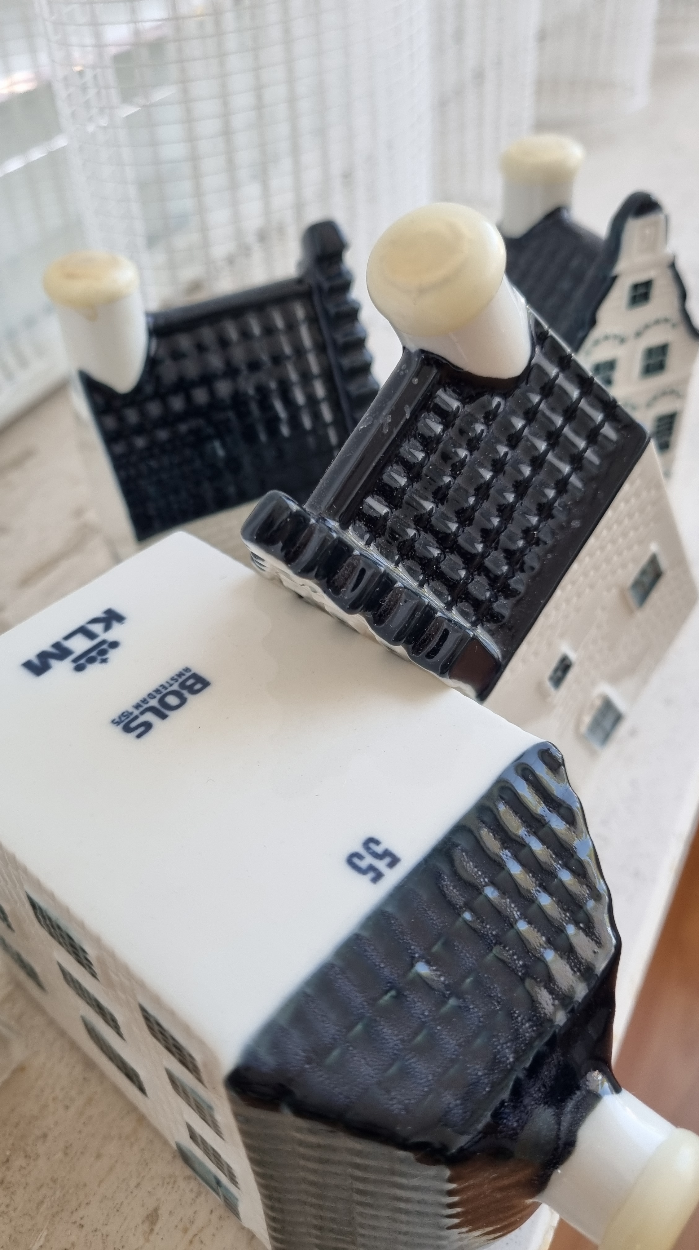 Ik plaatste wat – kennelijk jaloersmakende – plaatjes van mijn reis, want ik had wifi in het vliegtuig. Nou nou, toen was Leiden in last, want ik liet daarmee dus zien dat ik aan het vliegen was. Minderbedeelde reageerders zoals DSR, die zich doorgaans te voet of liftend of helegaar niet naar verre bestemmingen begeven, worden daar helemaal niet goed van. “Een decadente, pocherige plaatsing”, noemde de man het. “Opscheppen en het breed laten hangen”. Let wel, toen had ik nog niet eens laten doorschemeren dat ik business class reisde. Nee, vliegen, dan ben je rijk, dan heb je “een dikke portemonnee” en dat mag niet. Enfin, het betreffende ikje ligt in het inbakje van de NRC-redaktie, we gaan het zien. Of niet. Gelukkig zonden vele inzenders uit stille solidariteit foto’s in van de door hen verzamelde KLM-huisjes. Ik laat er in het onderstaande diapanorama een paar zien. Met dank aan deze dappere reageerders.