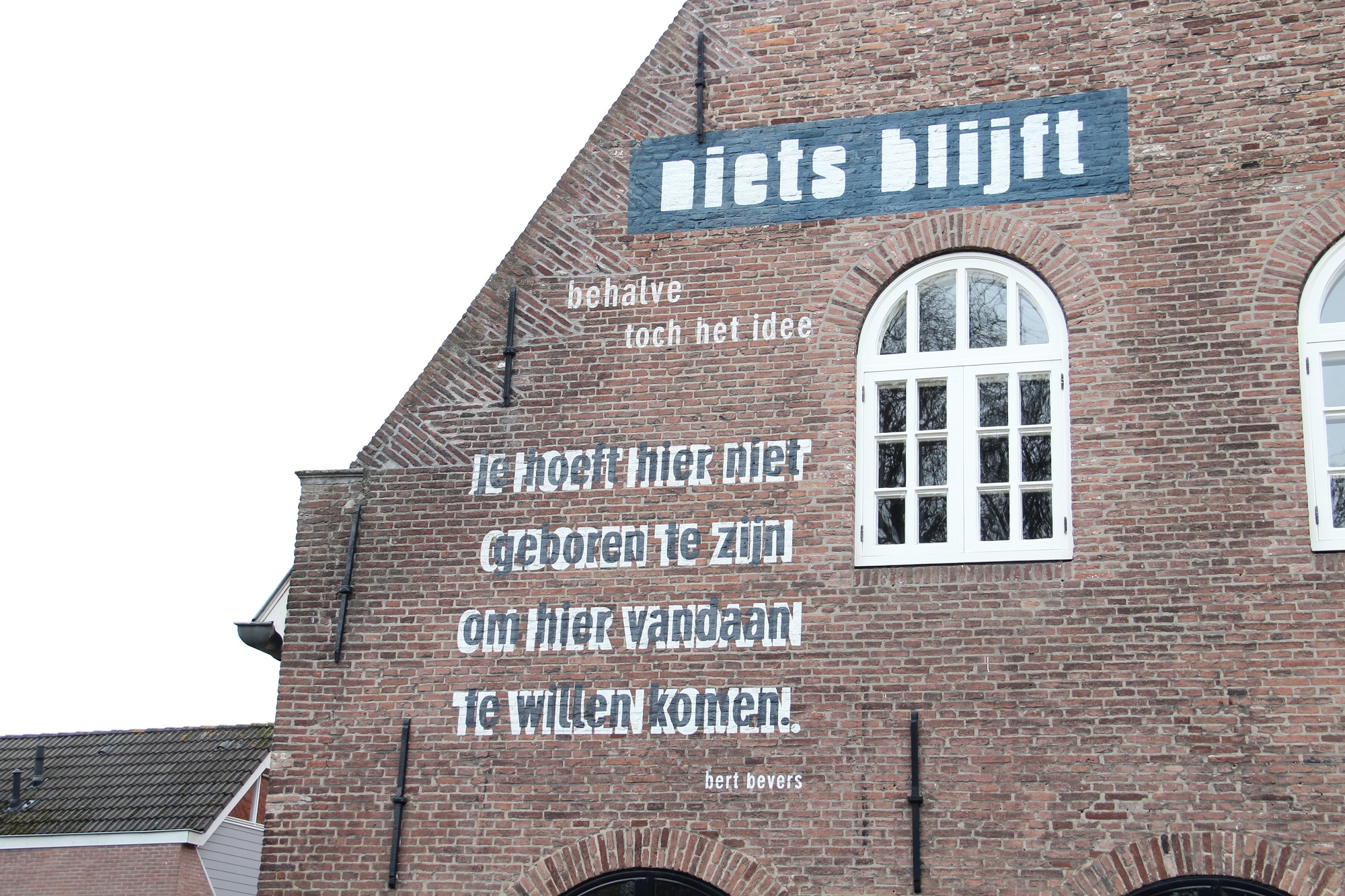 Ik stond afgelopen weekend dronken in een kroeg in Bergen op Zoom. We vieren daar deze dagen Vastenavend. Naast me stond een man, duidelijk geen Bergenaar en duidelijk ook dronken. „Wat is dit toch een schitterend feest”, zei hij, „zoiets kennen we in de Randstad niet.” Ik antwoordde met twee regels van de Bergse dichter Bert Bevers: „Je hoeft hier niet geboren te zijn om hier vandaan te willen komen.” Hij: „Wat mooi. Die zoek ik morgen nog even op.” Ik lees mee terwijl hij in zijn telefoon een notitie maakt: “je giegt hier niit vanddnn tre wlln kpnenen”.