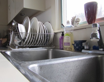 Ik leer ook van mijn afwas. als je het elke dag doet, is het een snel, prettig karweitje. Maar als je het dagen laat staan, dan wordt het een opgave. Toch weer die slagschaduw boven je bestaan. Je ziet de groeiende afwasbelt in de keuken iedere keer op weg naar de koelkast. Je moet er diep van zuchten en je neemt je voor om hem zo meteen ‘te doen’. Dat vreet energie. Maar als je dan echt geen schoon glas meer hebt, geen schoon schaaltje voor de brinta, geen normale koekepan, en als je met een oud zilveren gebaksvorkje van je oma’s servies in je aardappelen moet prikken, dan zit er niets anders op. Met een diepe zucht begin je eraan en … he … wat gek … het is eigenlijk prima. Vanaf het eerste bord. Het is rustgevend. En het is toch weer zo gedaan.