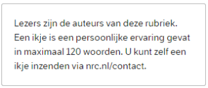 De mensen vragen weleens aan mij: “Bas”, vragen ze dan. “Die ikjes uit de NRC waar jij zo mee dweept, is dat nou echt iets bijzonders, of zijn het gewoon lezersverhaaltjes die in elke krant zouden kunnen staan?”
